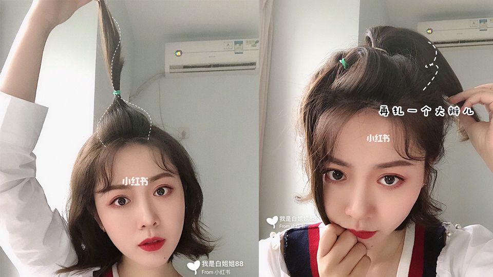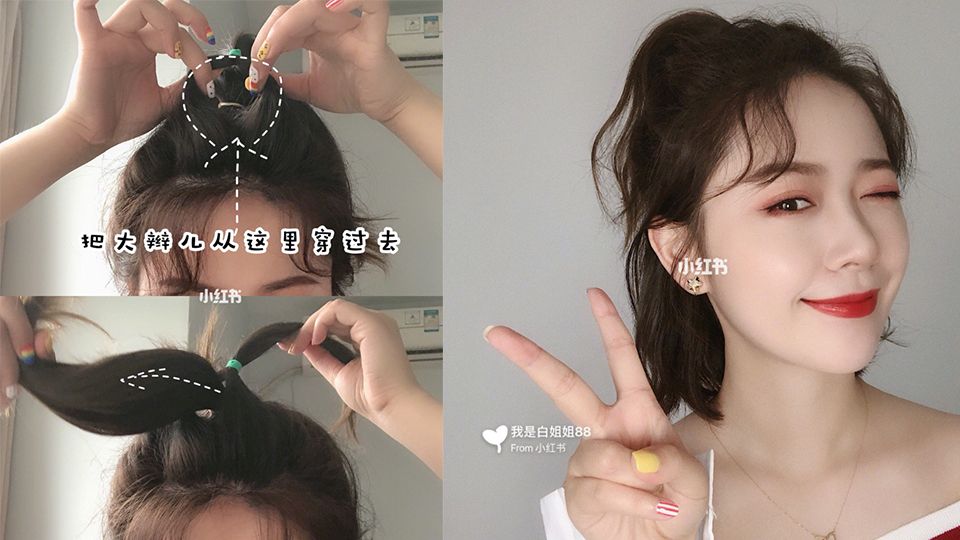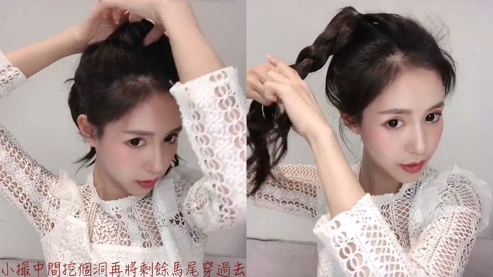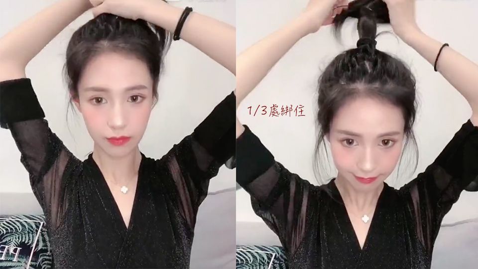 先在頭頂抓一撮綁個公主頭,然後再將剩下的頭髮綁起後,往剛剛的小撮中間穿過去,再將兩束一起綁住,頭頂跟後腦勺在做個微調就完成啦~另外,短髮的綁不了高馬尾也可以用這個方式也會是好看的半馬尾公主頭哦~