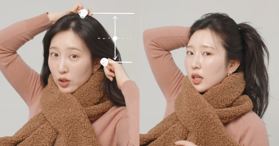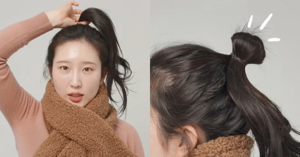長髮女孩在圍圍巾時、不綁頭髮會讓頭髮被圍巾壓著而變形,不然就是被風吹亂、隨時間越來越鬆塌,最後一款髮型其實也是馬尾,不過特別的是不用任何髮圈,但有時候想綁頭髮、剛好沒有髮圈,就可以試試看這個方法!