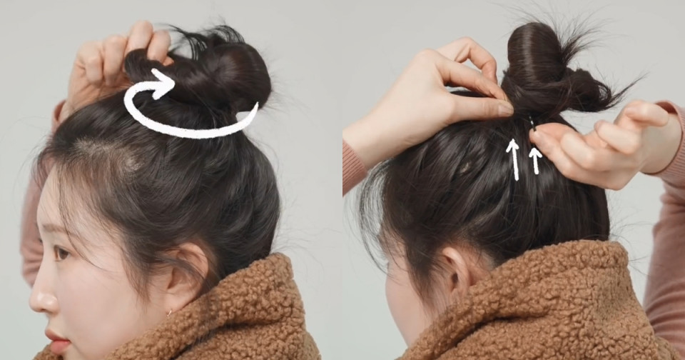 剩餘的頭髮部分在繞緊,最後以小黑夾「向上」插進固定即可,向上插會讓包包頭更立體。