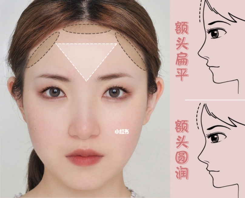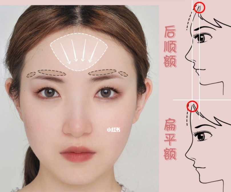 扁平額頭的特徵在於上庭平順,從側面來看幾乎沒有弧度,也就是所謂的額頭整體不夠飽滿。