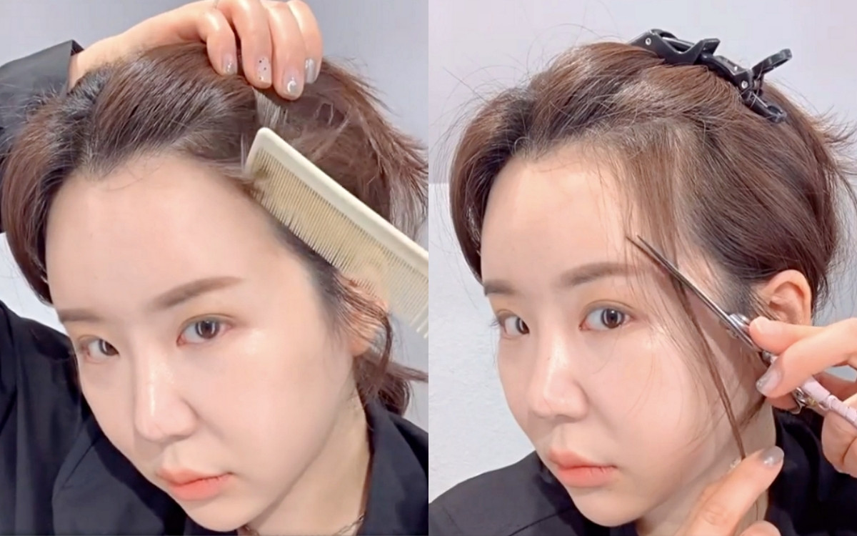 防疫期間不能上髮廊剪頭髮、只能靠自己了!趁著WFH期間練練手,就算不小心剪壞了不僅沒人看到、還有時間讓頭髮長回來!今天就帶來一個韓國髮型師親授的顯瘦瀏海剪法,根據髮際線部位挑出碎髮來剪,綁起包包頭或馬尾不僅更加隨性自然、也可以遮住髮際線比較禿的部位,更有顯瘦、修飾臉型的效果,快一起剪剪看吧!