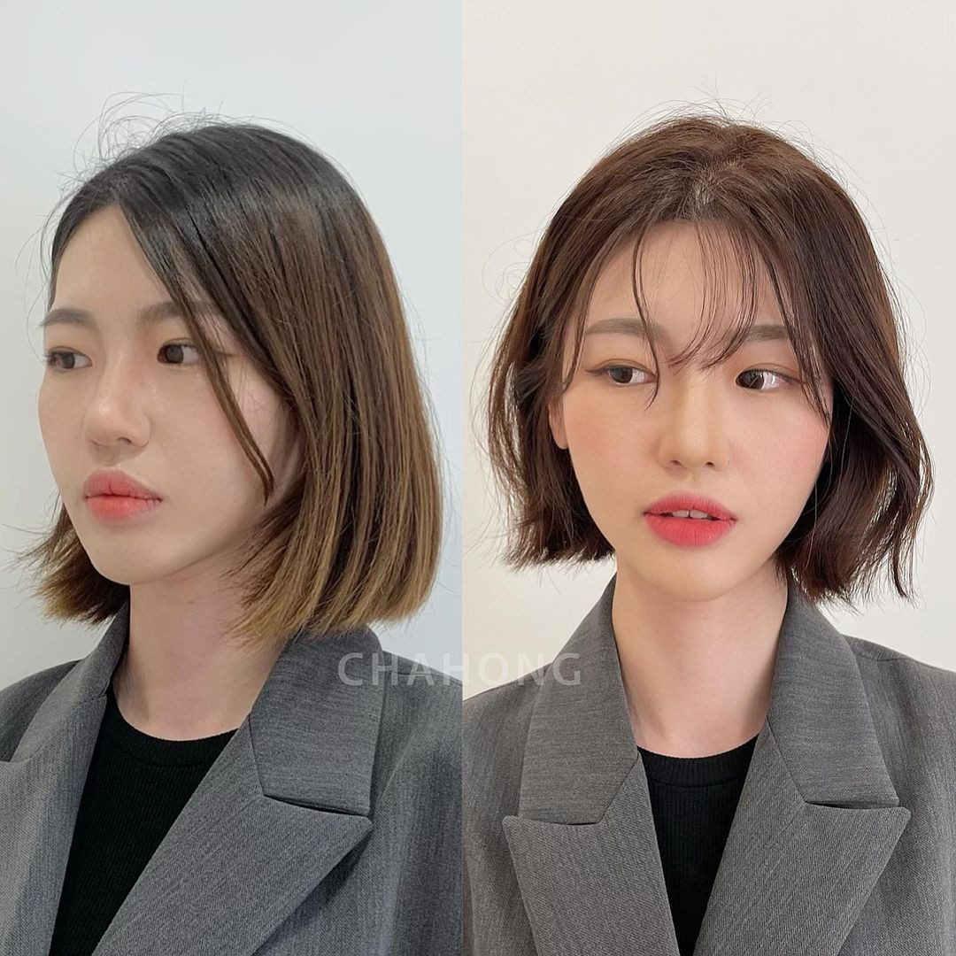 注意瀏海千萬不要直直垂下,直直的線條會更凸顯稜角,瀏海重點在於微微往外的弧度,可以很好的修飾顴骨線條,往下的話也可以修飾方臉下顎角,讓臉型更柔和。