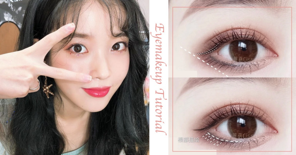 平行眼算是比較不挑眼妝的眼型,但如果是眼睛比較大的平行眼,沒畫眼妝很容易顯得無神。彩妝師建議可以像IU一樣,使用霧面淺咖啡色眼影先在眼頭和眼尾畫圓暈染,這樣能讓眼窩更深邃~下眼瞼則用深咖啡色畫出偽眼線,這樣能達到開眼頭的效果,也能製造清純的小狗眼感覺!