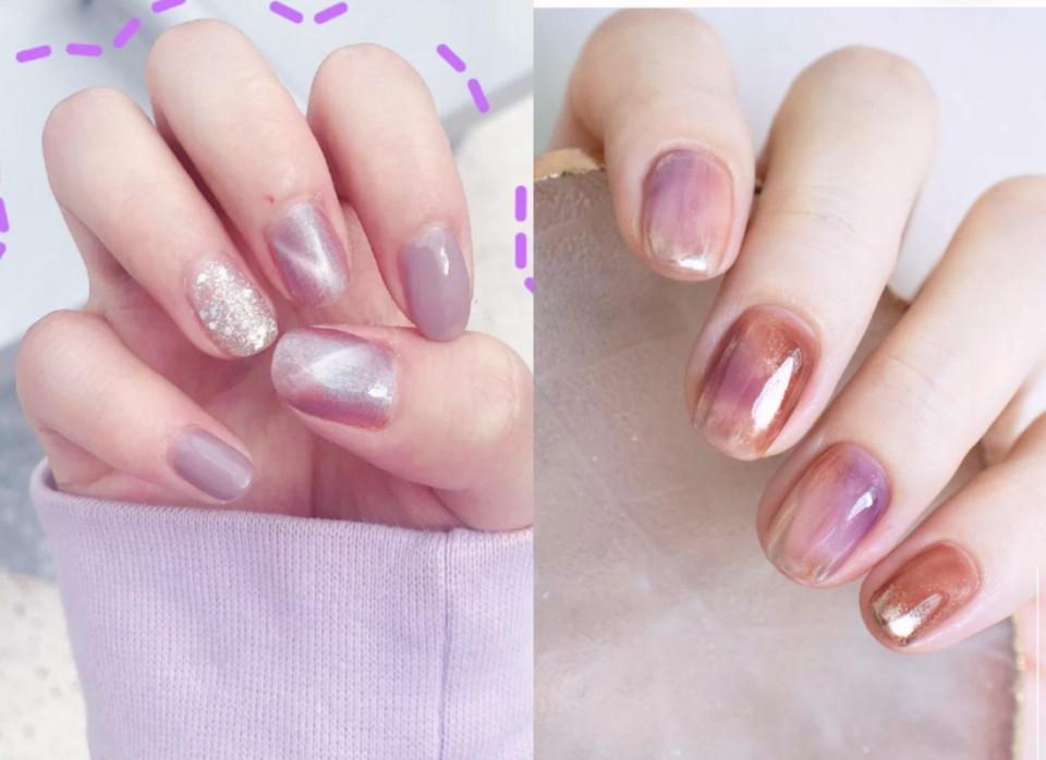 想要雙手有滿滿的高級感,這個系列的芋泥色美甲絕對不能錯過!搭配貓眼美甲讓雙手看起來更加特別,但是又不會太過平凡低調~而搭配光圈暈染美甲則非常有女人味,但又不顯老!