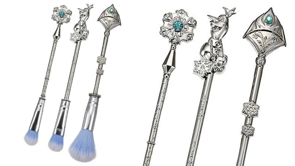 除了眼影盤,刷具組也是這次超級熱門的商品!其中冰雪奇緣刷具組是「雪花冰晶」、「雪寶」、「王冠」三個組合成的,分別是眼影刷、暈染刷跟腮紅刷,只是刷柄這麼精緻,怎麼捨得真的拆開用啦~