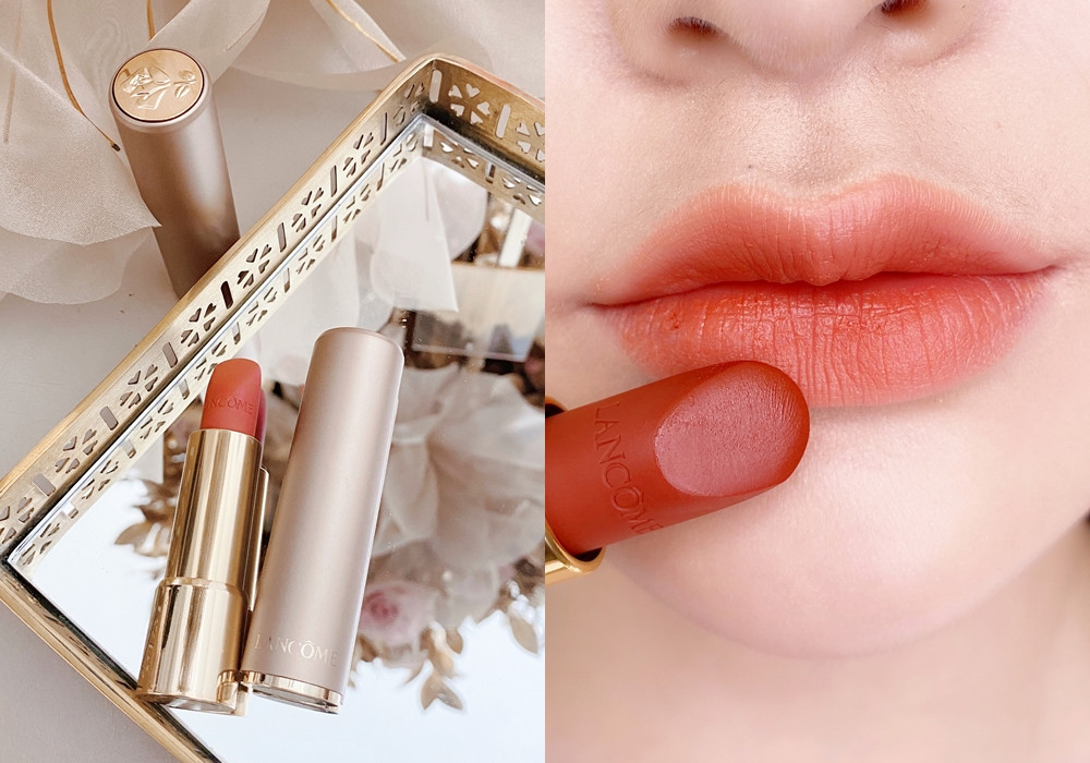 蘭蔻9月推出重磅新品玫瑰金粉管唇膏,整隻唇膏換上薄紗般的絕美粉霧金管身、簡直不要太美!注入3倍精華油保養成分,帶來滑順輕盈的上唇效果,#196楓紅玫瑰是品牌經典的熱賣色,磚紅色調的胡蘿蔔色一點也不泛黃、相當顯白襯膚,可以完成高級細緻的柔霧唇妝。