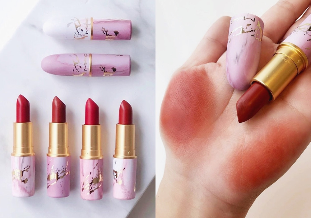M.A.C經典的子彈頭唇膏今年秋冬推出超美的粉電大理石系列,其中四款色調包含這隻#MARRAKESH,本身就是品牌的熱賣王色號、換上粉色大理石美到讓人尖叫!這款#MARRAKESH中藥色雖然偏暗紅,但是上唇相當飽和,薄擦厚塗都好看!