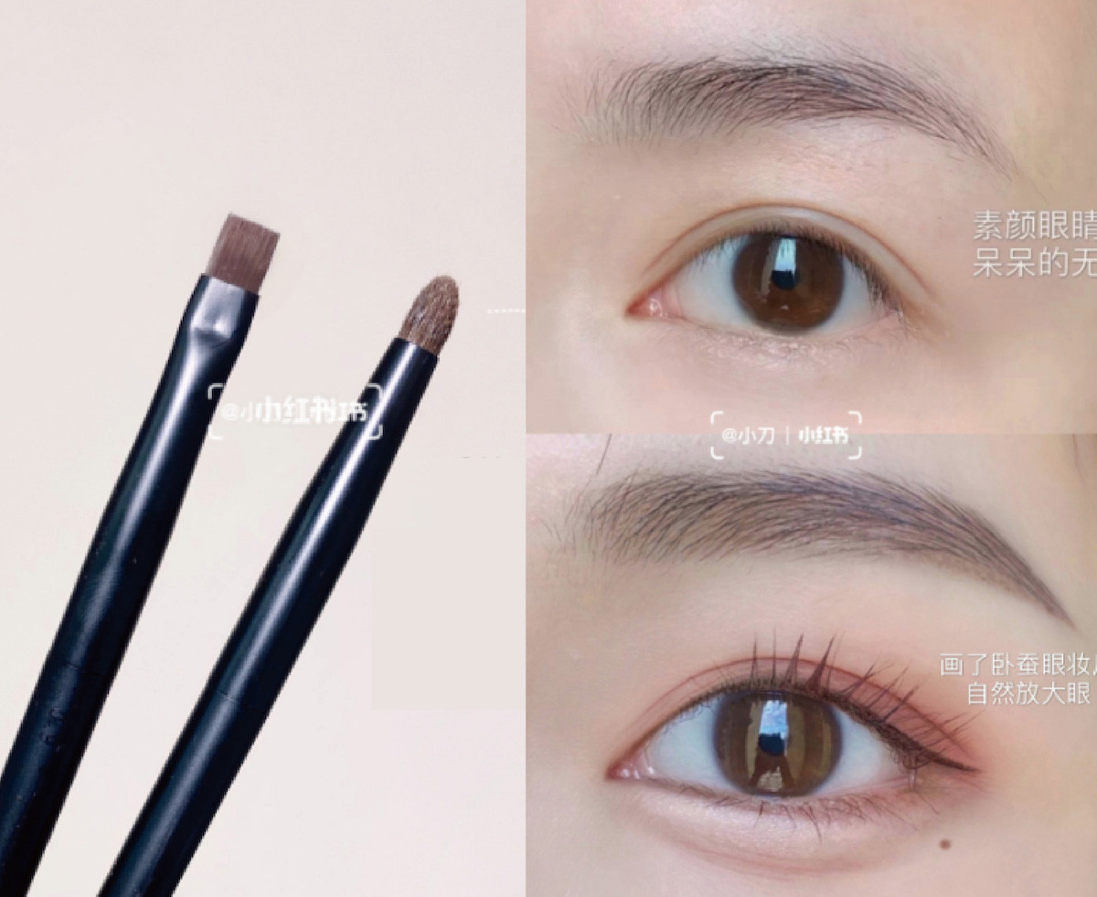而畫眼線時,挑選小扁頭的「細節眼影刷」,會較簡單勾勒、線條也能更窄更精緻唷!
