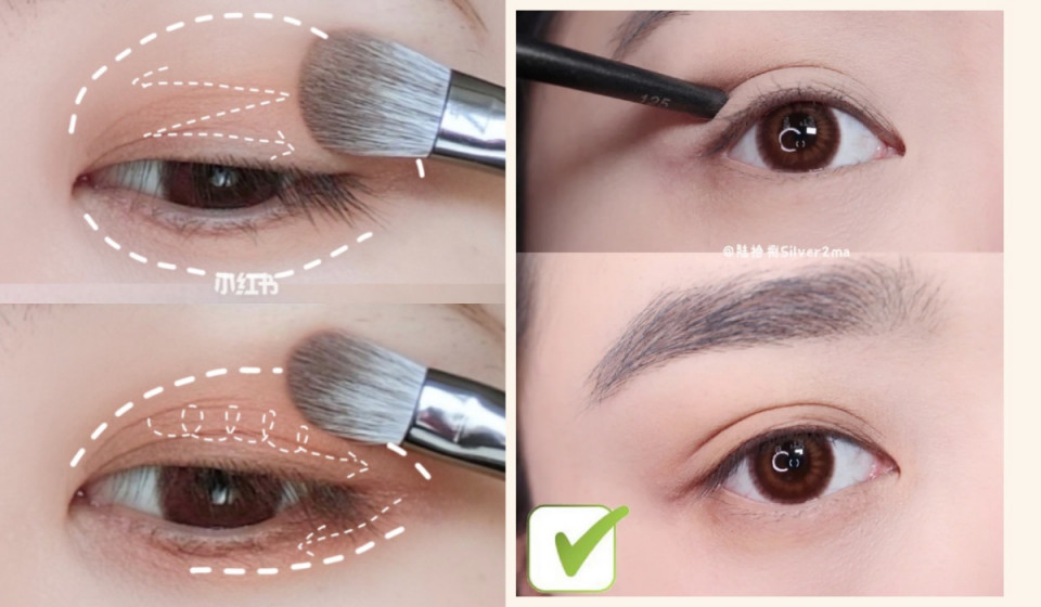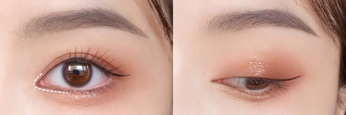 小技巧在於,少量多次的從眼尾往前暈染,範圍不要高過雙眼皮摺皺。