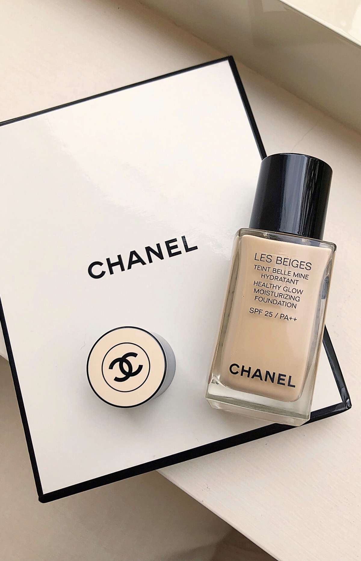 香奈兒這款剛推出的粉底液添加「聚光柔焦科技」,底妝上臉後可以反射光線,自動增加臉部紅潤光感~他的質地是很特別的水慕絲質地,上妝後非常服貼,光澤低調但精緻,是很自然的法式裸光感,不會過於浮誇、油膩!而且雖然是偏光感底妝,但是柔焦毛孔的效果卻非常好,乾肌也不怕秋冬因為毛孔缺水,上妝的時候顯得毛孔粗大~