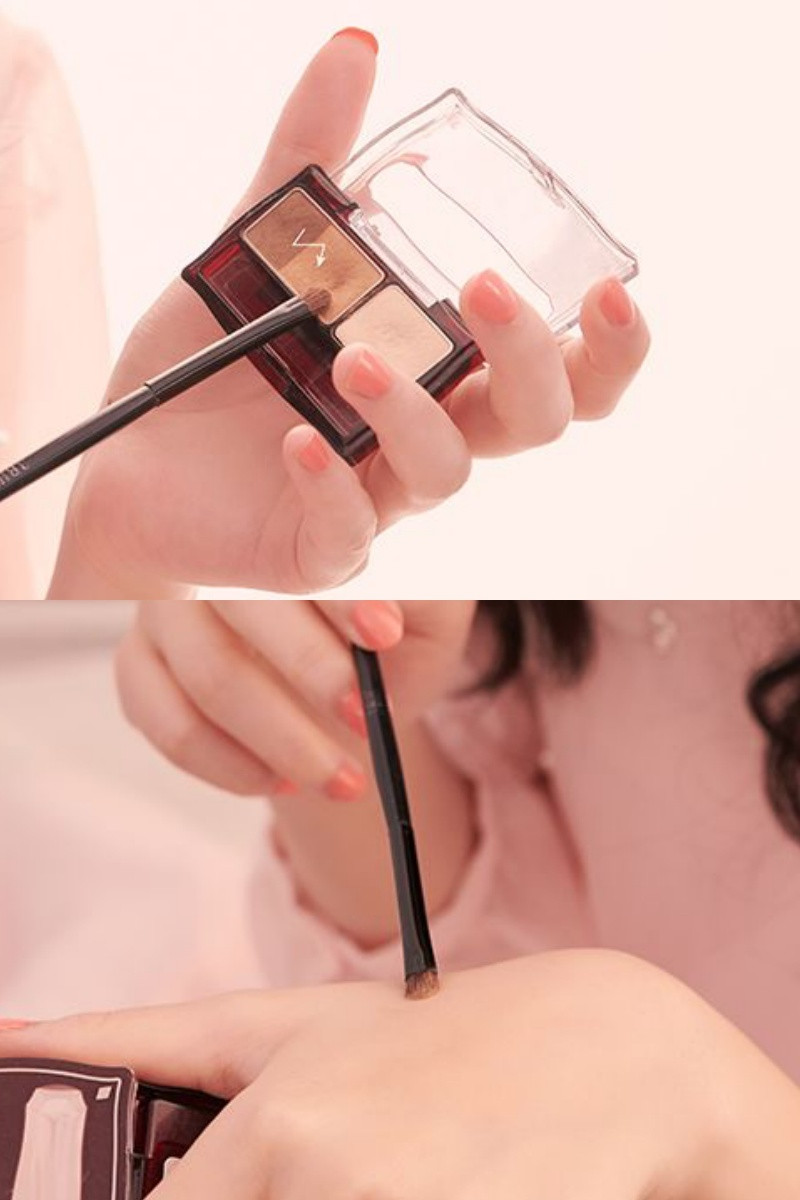 一筆難以畫出精緻臥蠶陰影線的人,不妨可以拆解成前後兩步驟來畫。以扁平刷+眉粉是韓妞的秘訣,下筆之前可以先在手上畫幾筆減少粉量,製造的陰影便會夠細又不突兀。