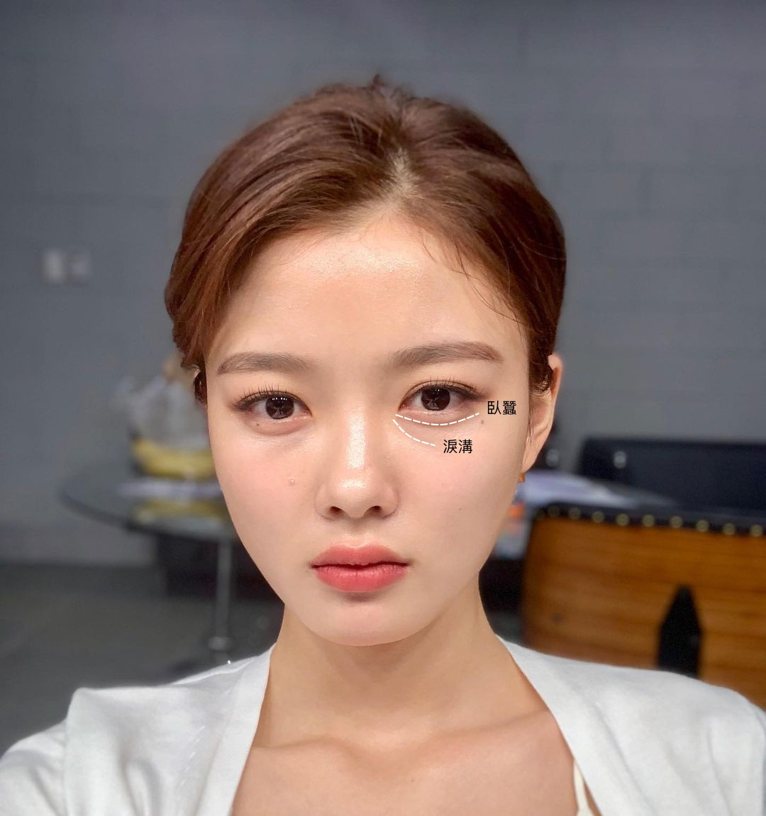 就像誤區一所說的,臥蠶寬度往往只有眼睛的一半寬,臥蠶下面的輪廓線是眼袋,再往下的大弧線是淚溝。眼袋與淚溝都是要用遮瑕品修飾的瑕疵。