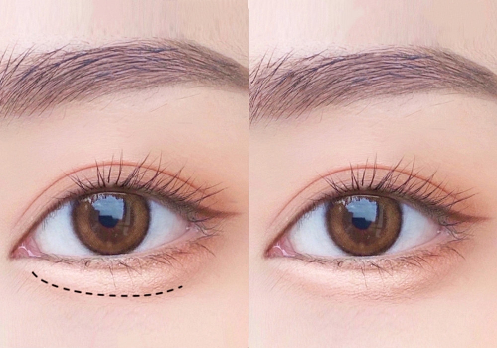 如果是臥蠶比較小的眼型,提亮完臥蠶後、可以再用臥蠶筆在臥蠶下方畫上一條陰影,再稍微暈染開即可,沒有臥蠶筆的話、也可以用最扁的刷子沾取最淺的修容色輕輕畫上一條,注意陰影部位不要畫超過眼球下方,避免臥蠶陰影顯得不自然。
