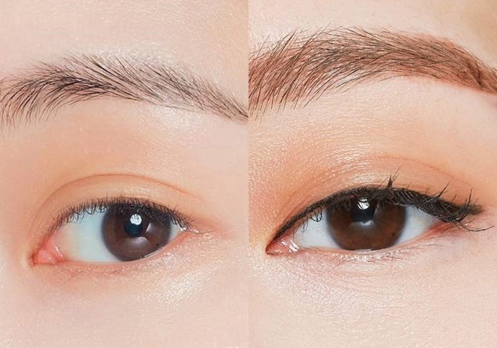 對比一下有畫臥蠶與沒畫臥蠶的差別,是不是很驚人?有臥蠶的那邊眼妝很淡、而且有種楚楚可憐的裸妝感,沒有臥蠶的那邊則相對強勢,在顏色相對清淡的眼妝之下,只以臥蠶也可以帶出眼窩深邃感,讓眼妝更加有重點也更精緻,下次畫眼妝時也試試看吧!