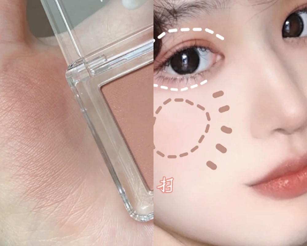 很多新手在剛學化妝時,很容易忽略腮紅這個步驟~不過對於「綠茶妝」來說,腮紅其實是精髓!腮紅不只可以提升整體氣色,也能讓妝容看起來更有無辜感,如果上對位置,甚至還有瘦小臉的功效~彩妝師建議黃肌在選腮紅時可以選擇帶蜜桃色調的腮紅,這樣看起來更加顯白,也襯托好膚質感。除此之外,臉肉肉的人可以以「斜45度角」的形狀上腮紅,修飾臉型的效果會很好!