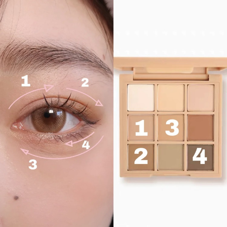「綠茶妝」的重點就是要讓人覺得你很美,卻又看不出化妝得痕跡~因此眼影上建議採用去繁從簡的方式,上一點淺淺的大地色,壓掉眼皮的腫泡感即可!只需要用膚色眼影打底,接續使用杏色、奶茶色、深咖啡色的眼影,分別在眼窩跟眼尾暈染開就完成了~