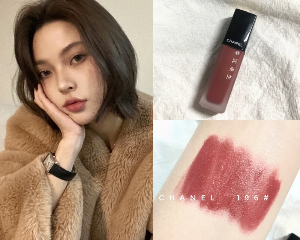 第一款要介紹的就是香奈兒的#196唇露~它屬於偏霧光型的唇釉,刷在手上看起來是很溫柔的乾燥玫瑰色,但是上唇後棕色調就會變明顯,看起來更加魅惑,對於黃肌來說還非常顯白,又純又欲的魅力完全讓人招架不住啊!