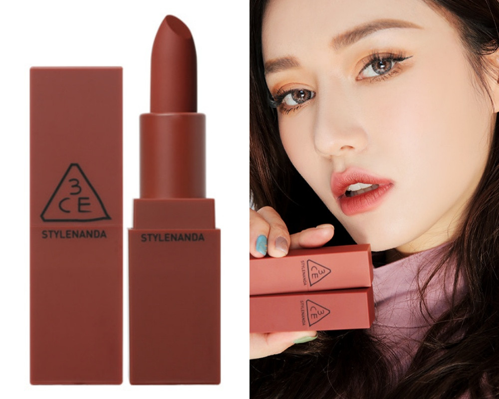 3CE的#909雖然沒有爆紅,但是黃肌們絕對不能錯過!它厚擦時是很正宗的紅茶棕色,霸氣又撩人,薄擦或是暈染唇周後的玫瑰棕感就會很剛好,不只很適合秋冬使用,也是近年很流行的復古感色調!