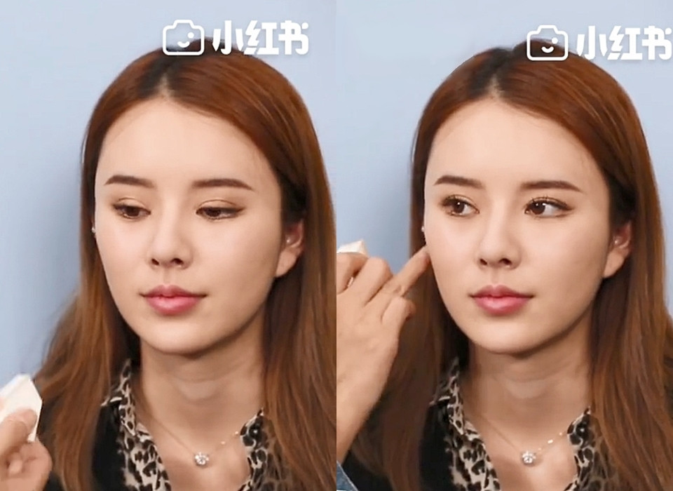 對比一下,可以看到修容後的另一邊不只臉小、整個蘋果肌更是膨潤拉提不少,雖然沒有用到正常的高光、陰影,單用透明蜜粉也可以做出修容感,而且底妝依舊乾淨透亮,完全不影響妝感,怕修容有色塊感的女孩一定要學起來!