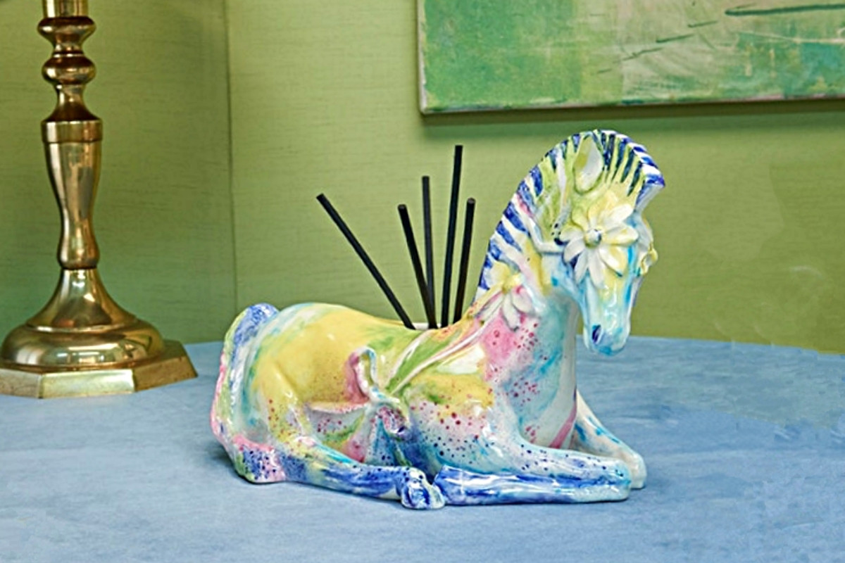 神話般的仙獸,擁有龐克的髮型與嬉皮式潑彩風格的彩虹斑馬陶瓷擴香罩,奇幻又嬉皮。