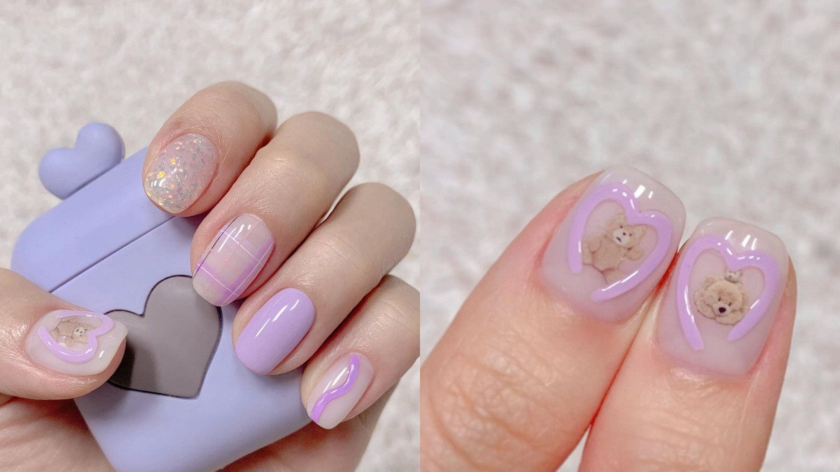 2021薰衣草紫美甲推薦.7:童趣小熊