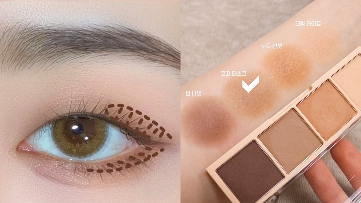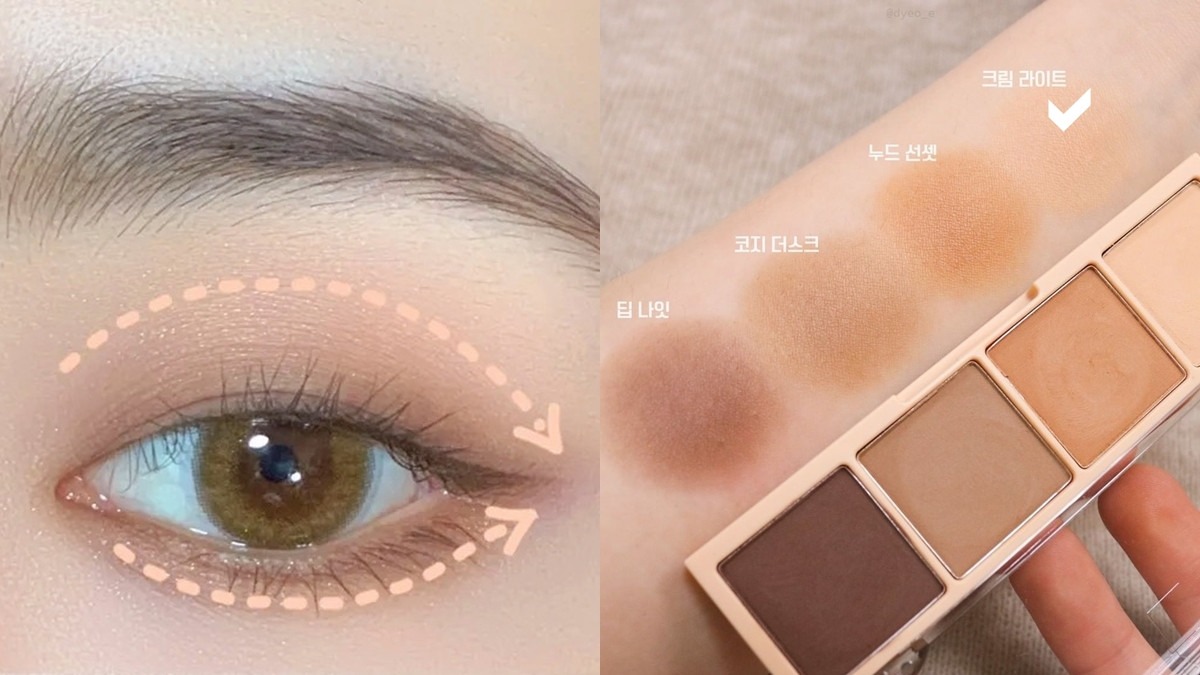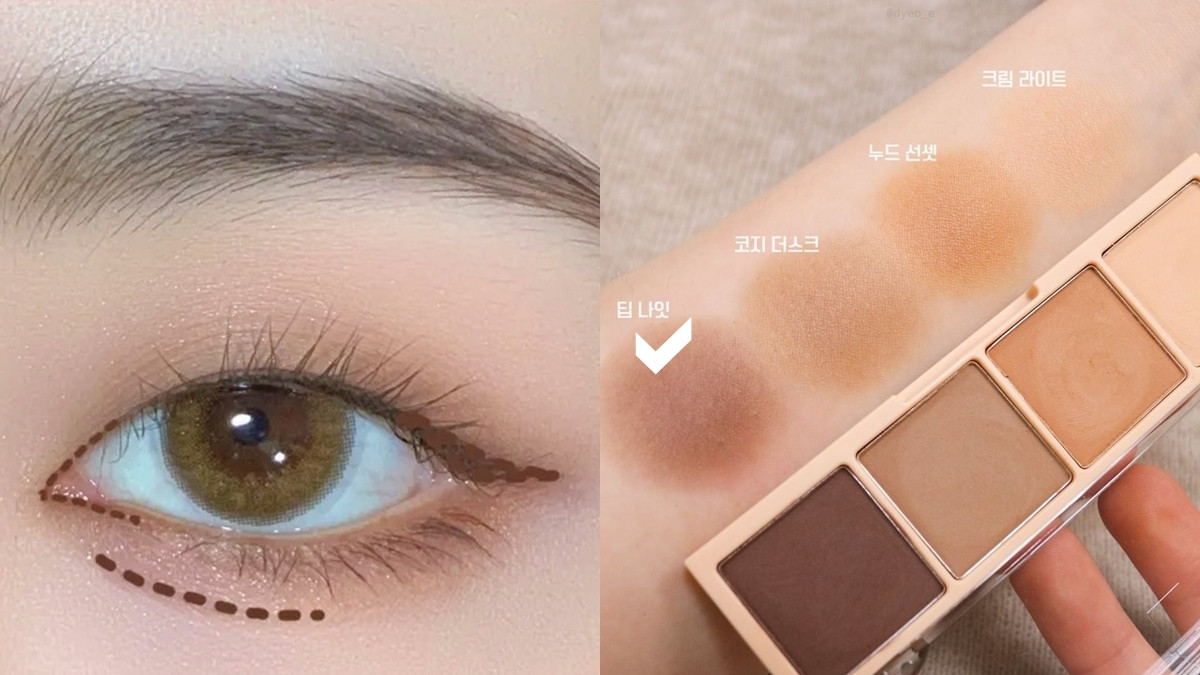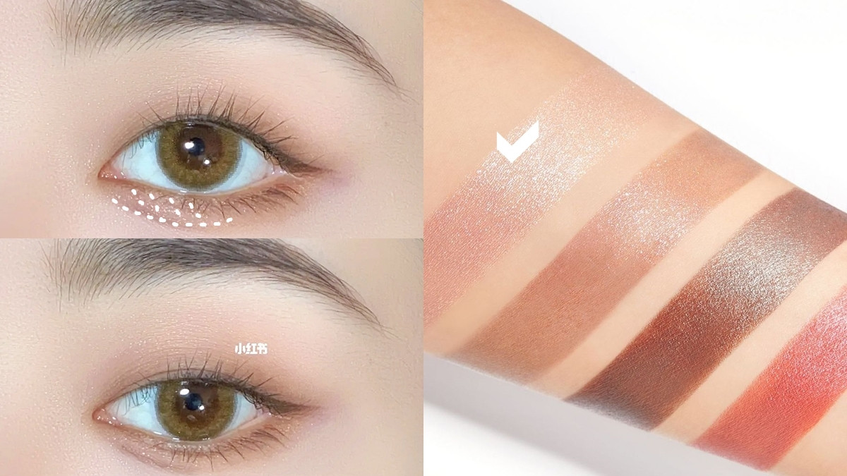 上眼瞼簡單以淺色打底,將重點放在下眼瞼的臥蠶及眼尾暈染,在視覺上可以有放大眼型的效果,重點是這種眼影畫法對內雙、單眼皮更是友好,不需要透過眼線也可以有明顯的修飾效果,下次記得跟著畫畫看吧!