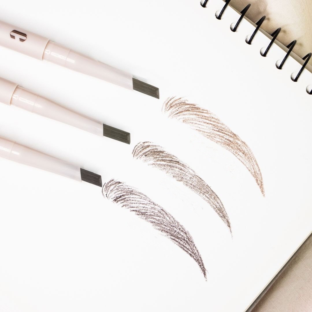 接著不要直接用眉筆描框,而是順著眉型畫出毛流感,可以先從後半段眉峰至眉尾開始畫、以稍微淡一點的顏色斜斜畫出線條,不用想說要整個畫滿,這邊只是先找出眉型而已,化妝師也分享選眉筆技巧,新手眉筆建議選擇稍微硬一點、上色沒有那麼明顯的款式,避免下手過重、眉毛變成蠟筆小新!