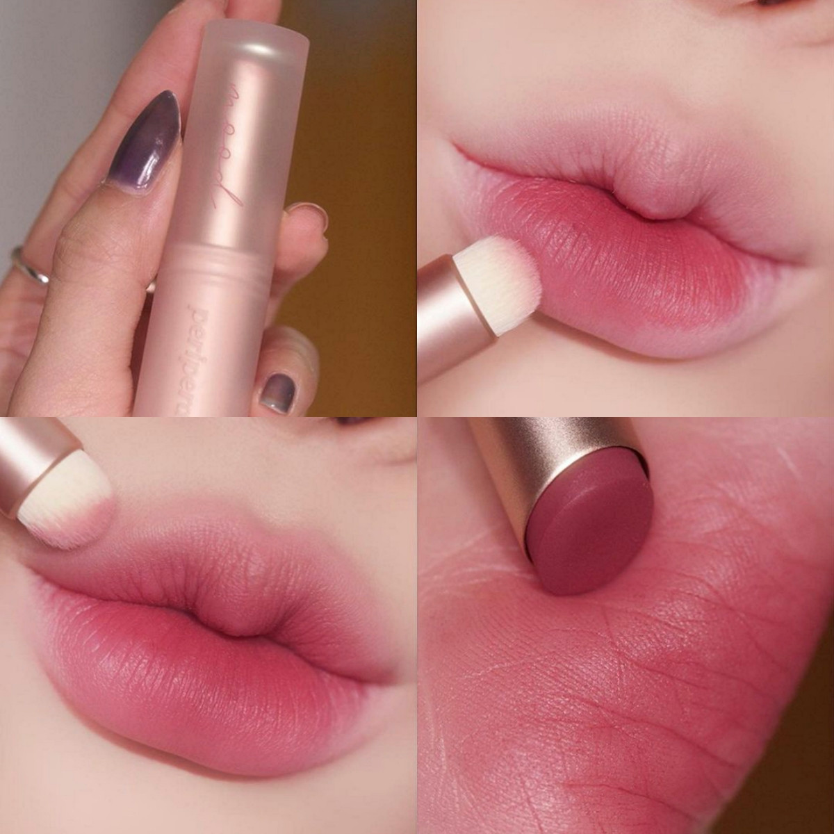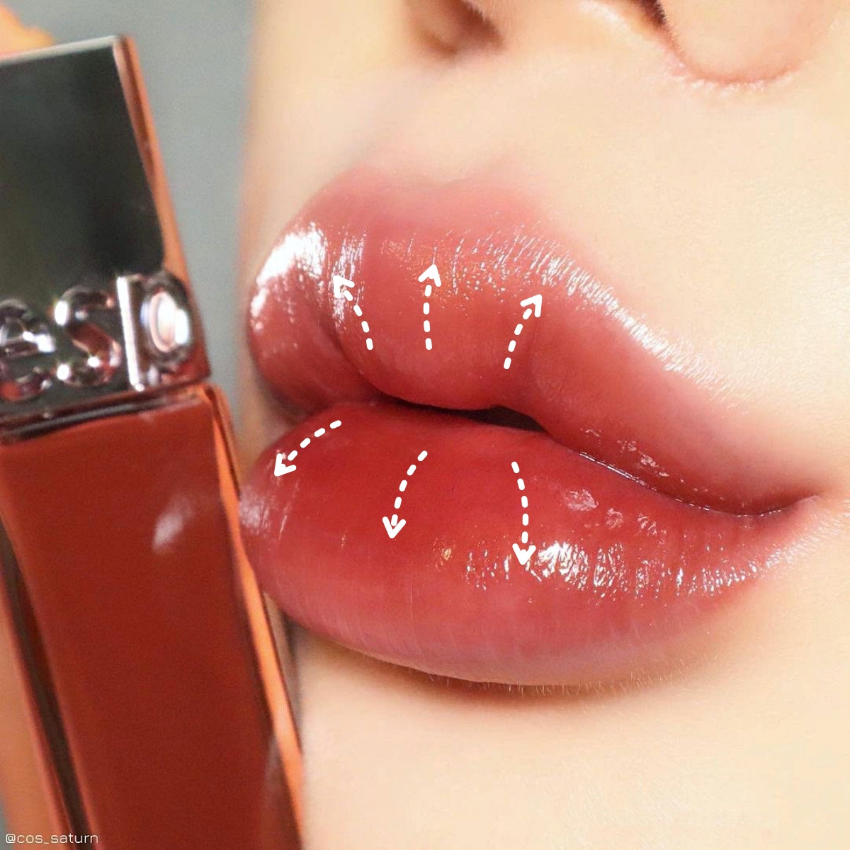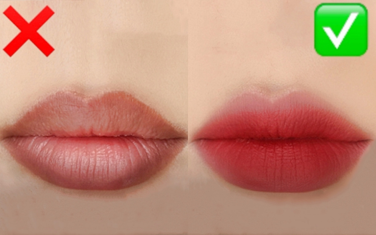 先以與唇內側顏色相近的唇膏打底後,接著可以在靠近唇內側部位畫上較深色的唇膏,慢慢往外暈染,這樣不僅能讓唇色更加均勻、也有咬唇感,是比較適合深唇人的畫法。