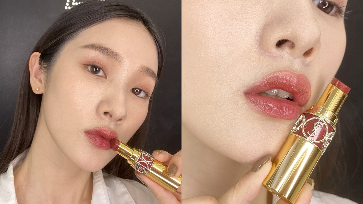 另外,在擦完水潤型唇膏後,也可以使用與唇膏同色系的腮紅、眼影加強定妝,不過要記得找粉質比較細膩的粉狀產品喲~這樣才不會像用蜜粉定妝後,會改變水潤型唇膏的質地與光澤。
