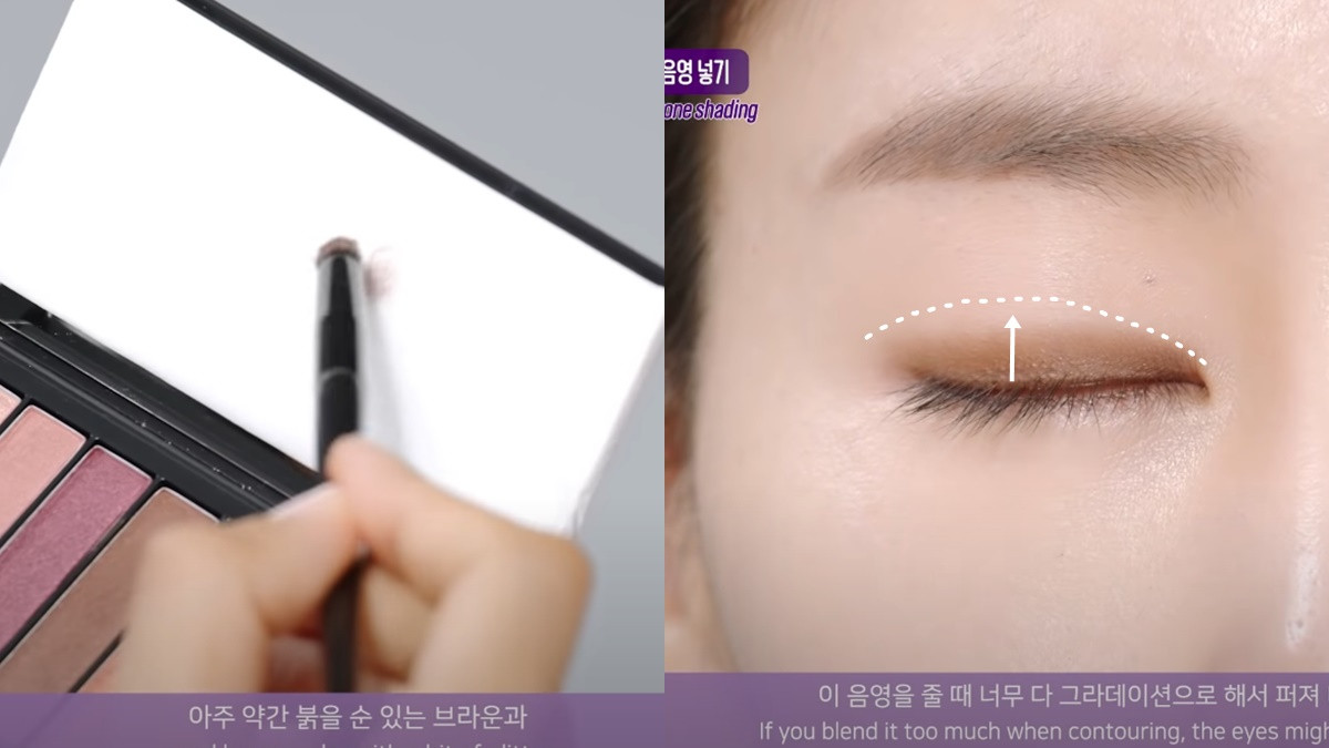單眼皮的弱點就是因為缺乏深邃感,因此韓國化妝師鄭瑄茉建議可以挑選比膚色深一階的奶咖色打底眼窩,製造天然漸層感,一瞬間扁平的五官都立體了起來。