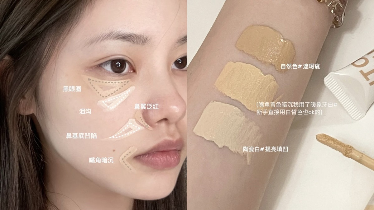 重點是多了「三角形遮瑕法」,不僅能幫助定位瑕疵位置,也比較好拿捏遮瑕用量,不怕隨便塗抹上臉,看起來粉感太重。