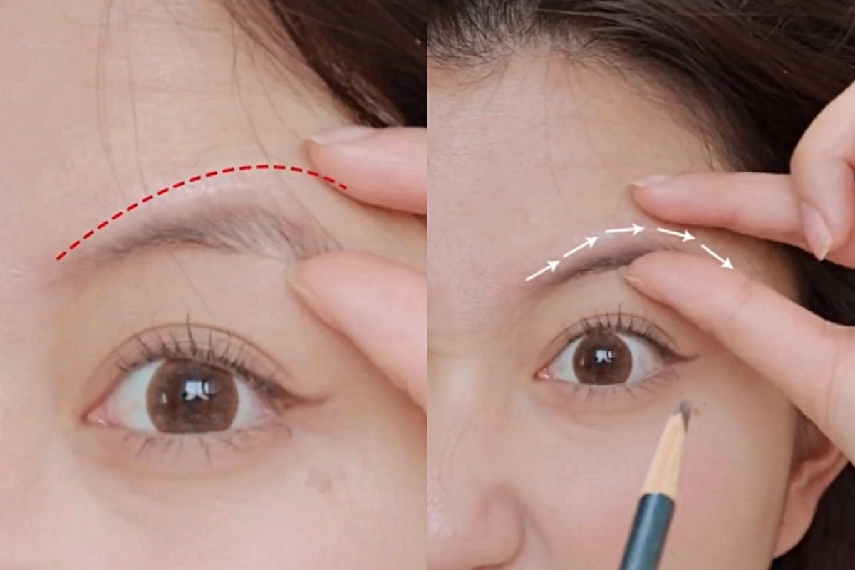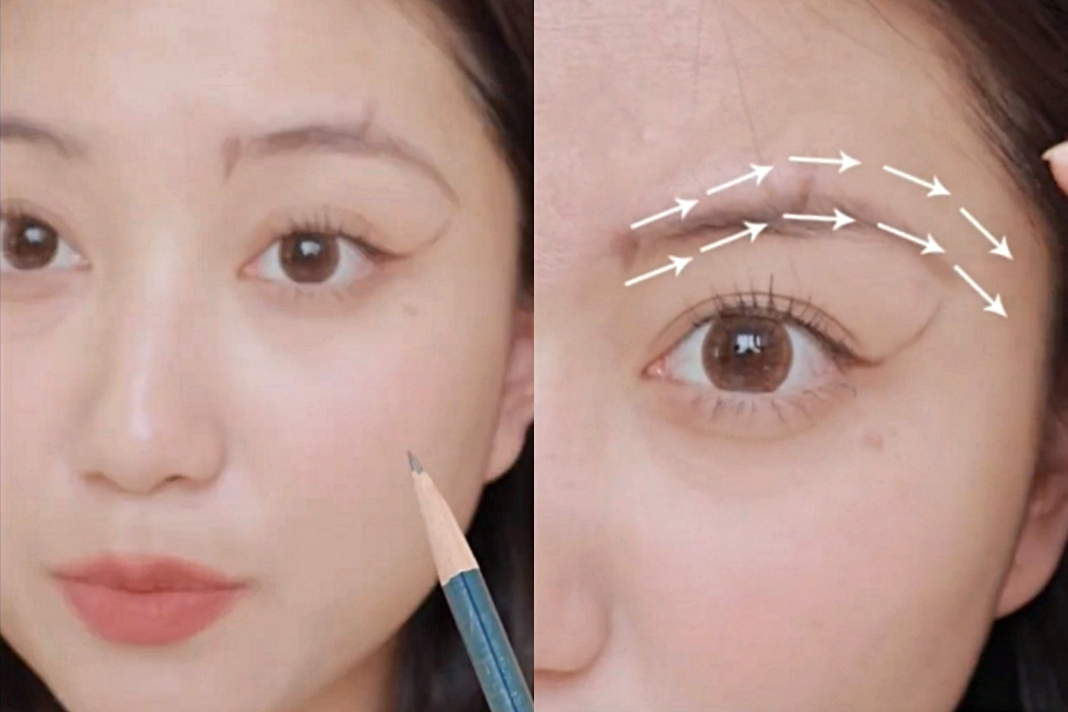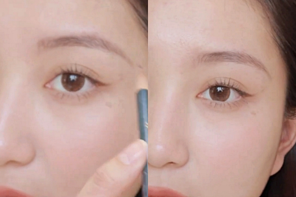 眉眼間距較寬的畫則相反,可以將眉毛畫的粗一點,在眼輪匝肌範圍內將眉毛整體往下畫、減少眉毛下留白,修飾及矯正眉型,最後再以定位點為基礎,順著眉毛毛流走向畫出眉型,以眉筆輕輕勾勒、直到畫到眉尾位置,這樣子就完成骨相畫眉了。
