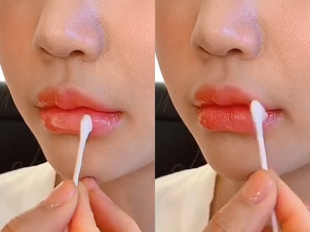如果是液態唇釉的話,化妝師建議以「輕點」的方式來上妝,可以輕輕點在唇部內側、在稍微用嘴唇或手指抿開,就會有漂亮的漸層唇妝,不要左右來回塗抹,不僅容易將唇色卡進唇紋中、也很容易反而搓出一堆嘴唇死皮。