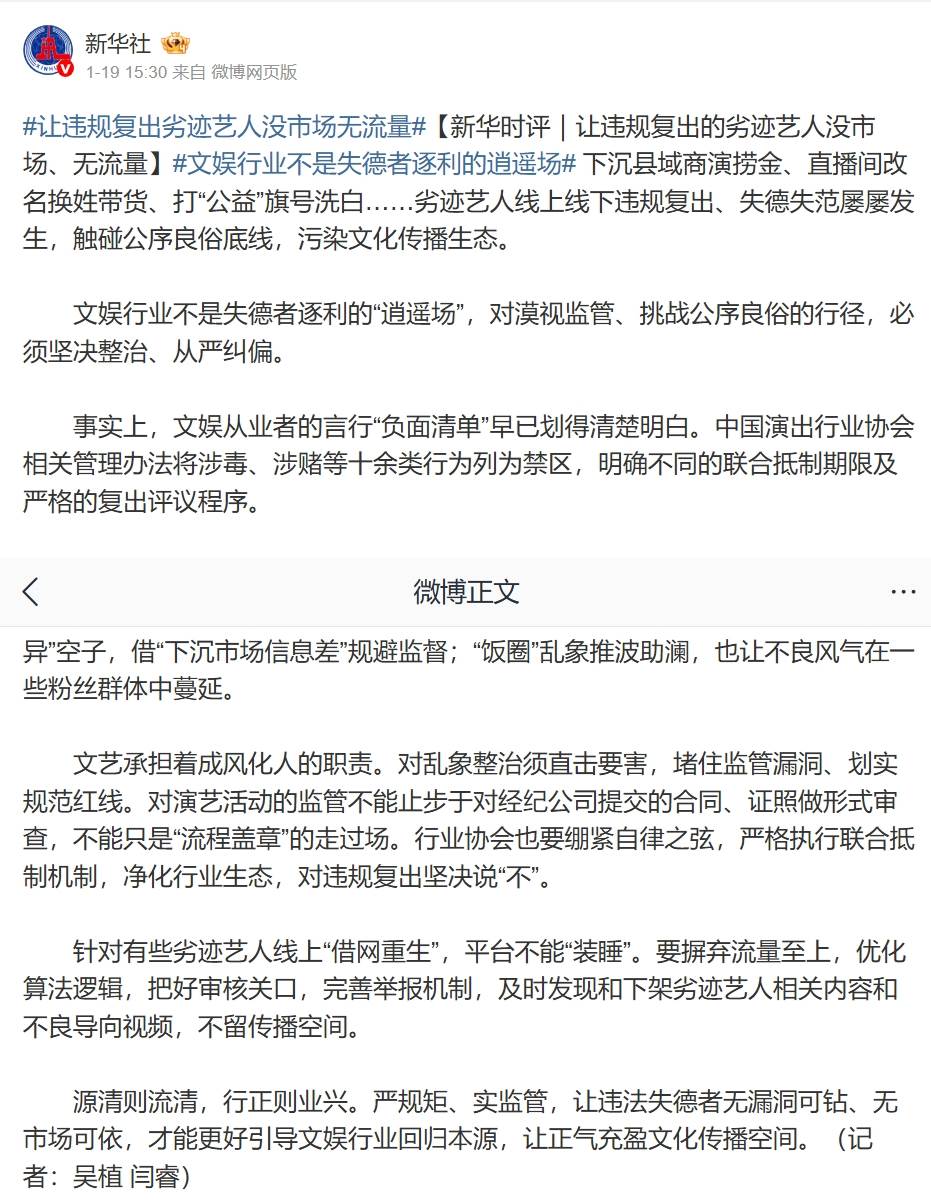 中國官媒《新華社》本月19日發長文發表評論,強硬點名要整治劣跡藝人透過直播、商演、公益名義等方式「變相復出」的行為,強調這類操作已觸碰公序良俗底線,直言「文娛行業不是失德者逐利的逍遙場」,也被解讀為對趙薇復出空間正式說不。