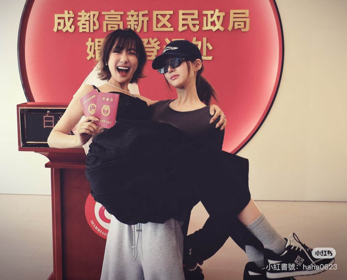 不過,比起婚訊本身,更吸引關注的是趙露思全程陪同好友登記的暖心舉動。當天她陪同登記,一度被外界誤以為是自己要領證結婚,直到照片曝光才發現原來是陪閨密完成人生大事。現場氣氛輕鬆歡樂,趙露思不僅與魏笑合影留念,還上演「公主抱」、扮鬼臉等搞怪互動,讓畫面既溫馨又逗趣,展現兩人深厚情誼。