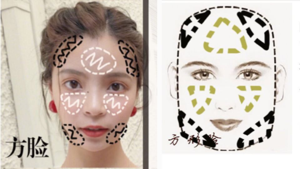 方臉女孩最困擾的,莫過於下顎線條過於明顯,但是下巴線條卻又不明顯,因此首先需要做的,就是在下顎處以三角形的形狀修容,讓下顎線條看起來更圓滑;接著額頭邊緣也打上三角形陰影來突出顴骨,更能相對減少下顎的寬度!接著繼續以三角形的方式在額頭正中央做打亮,並選擇比膚色淺一階的粉底液,以倒三角形式在兩頰提高亮度!這樣做可以將視線集中在臉部中央,降低大家對臉部邊緣線條的注意力,讓你立馬擁有性感混血臉!