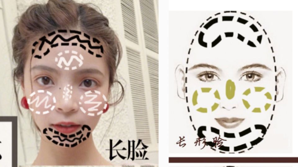 長型臉也是俗稱的馬臉,臉型過長導致長臉女孩時常需要用妹妹頭遮住額頭,但是有時候我們也想留個有女人味的髮型啊!想要成為性感小姐姐,修容第一步就是在下巴處打上橢圓型陰影!(很多女孩只記得要遮住額頭,卻忽略了其實上下都是關鍵啊),接著,再以偏圓的方式在蘋果肌掃上打亮,臉部視覺寬度增加後,長度也會相對減弱!如果還是很在意額頭,可以在髮際處薄上陰影~讓高額頭成為髮線的一部分~