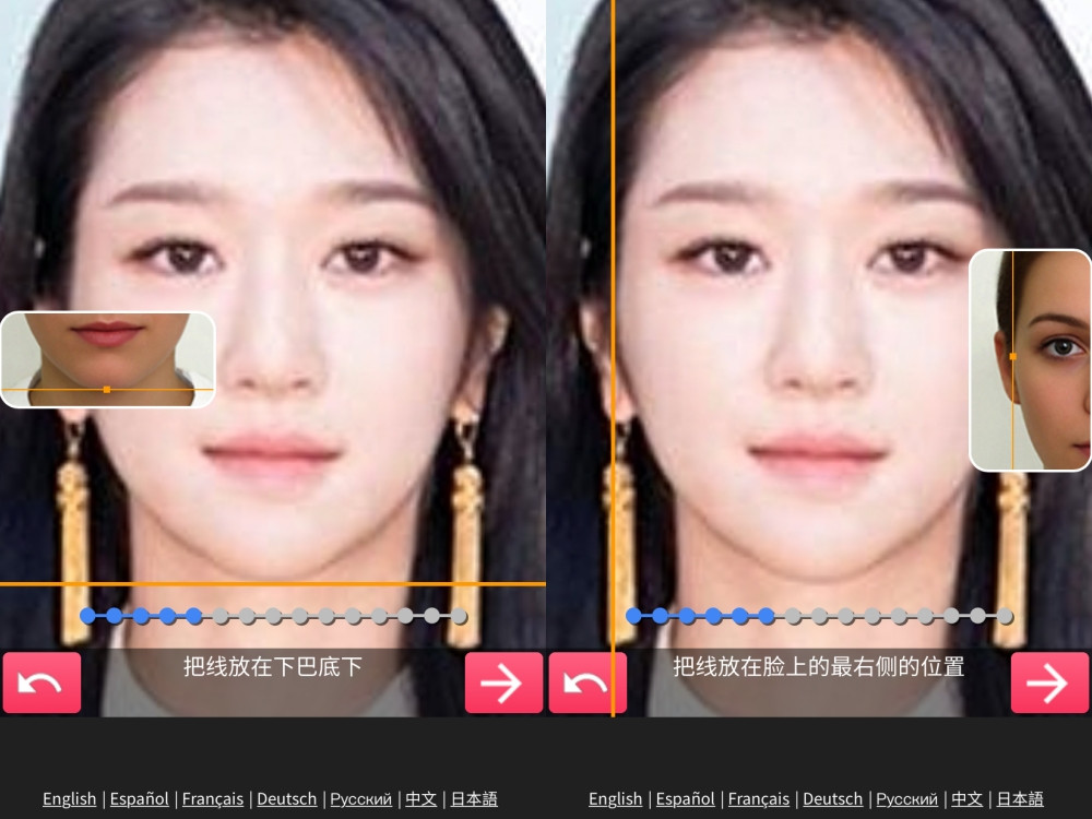 之後會出現不同的指示,可以根據指示將照片上的箭頭或線條稍微移動、放在照片中相對應的位置即可。