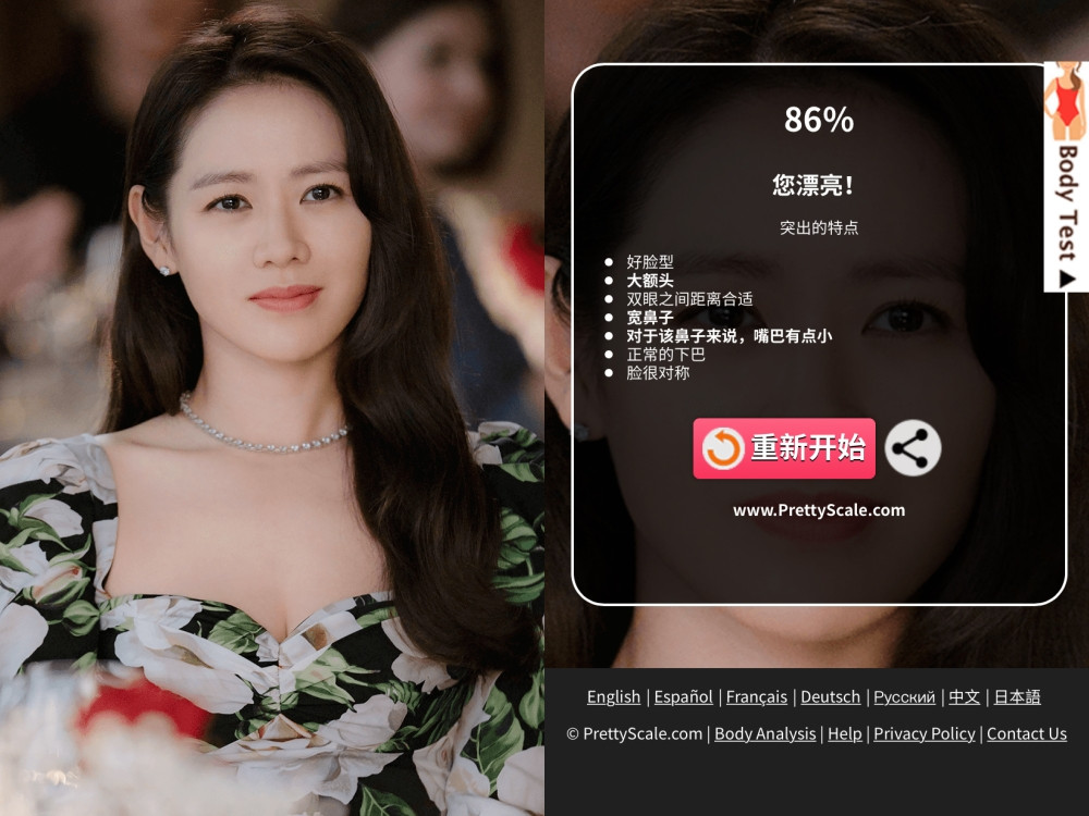 漂亮姊姊孫藝珍也是沒有例外的高分,臉型、雙眼間距、下巴都很標準,不過一樣有嘴巴較小的問題,之後就知道可以透過化妝來調整。
