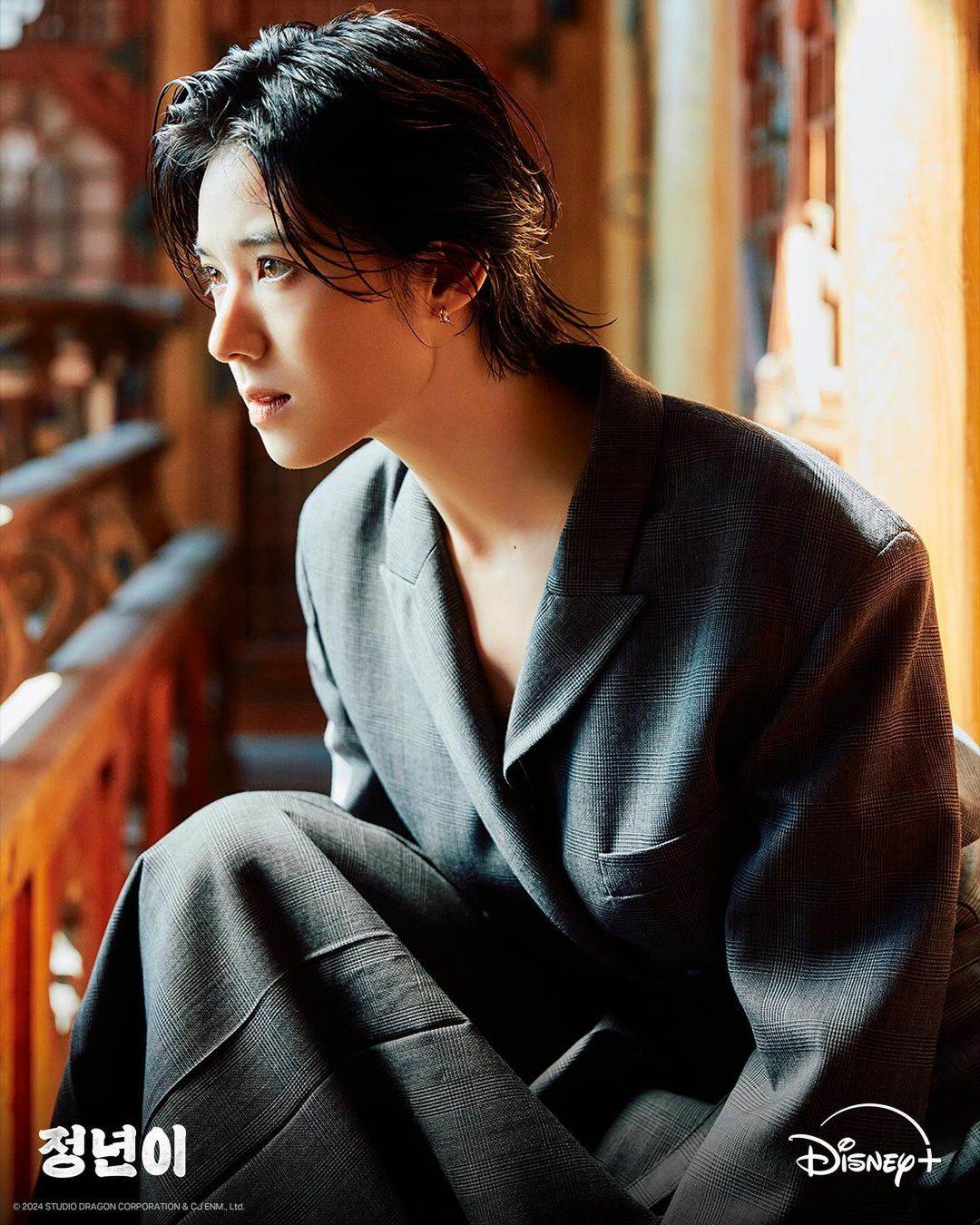 同樣來自《正年》,鄭恩彩為了詮釋劇場頂級明星,剪去長髮、換上男裝,舉手投足都是冷感王子氣場。她更透露,私下為了穿出挺拔線條,特別加強肩頸與上半身訓練,連姿態都重新學過。短髮只是外在改變,真正讓角色成立的,是她對細節的極致要求。