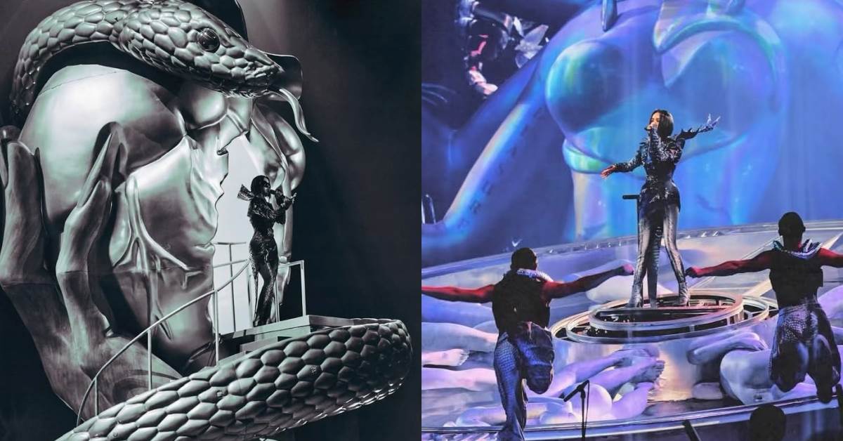 - 3. 蛇冠心座:蔡依林《Pleasure》專輯概念探討慾望非原罪,而是人性「美麗脆弱的本能」,從視覺寫真延伸到演唱會舞台,希臘神話「美杜莎(蛇)」是核心關鍵。蔡依林站置身演唱的「蛇冠心座」,融合金屬雕塑工藝與當代舞台工程技術。精細程度甚至還有醫生歌迷在台下「職業病發作」,忍不住大讚這座「蛇包心」舞台道具很棒,對於心臟各個位置考究得相當正確。