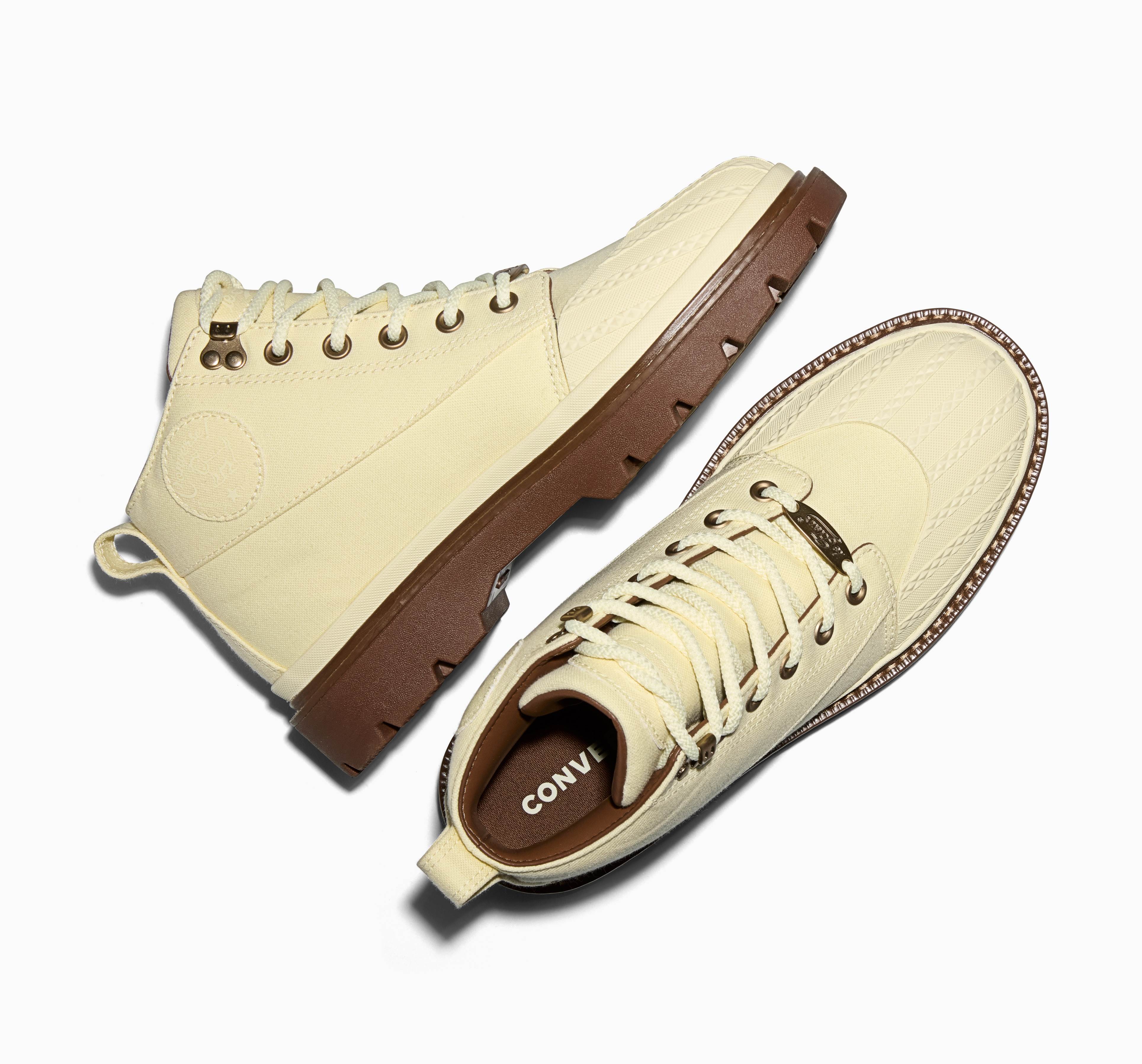 今年秋冬,CONVERSE攜手創意鬼才TYLER, THE CREATOR,推出1908系列新作BRONCO BOOT,選用高品質絨面革、帆布或皮革材質,以極簡配色為鞋款注入全新活力;首發三款配色分別為棕色、黑色和白色,均復刻經典橡膠鞋頭包邊設計,搭配純色圓形編織鞋帶和定製雙色圓形編織鞋帶,飾以LE FLEUR*品牌標識鞋帶飾扣,造型更加別緻。