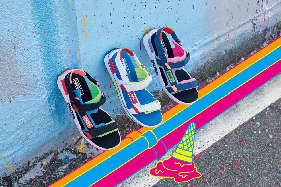 今天小編要介紹一款PUMA新出的復古涼鞋,配色超亮眼,讓你走在路上都能成為大家的焦點,更能透過搭配長襪的方式,讓你的長腿更加修長!整個復古味UP UP~就算是單穿也是敲好看。