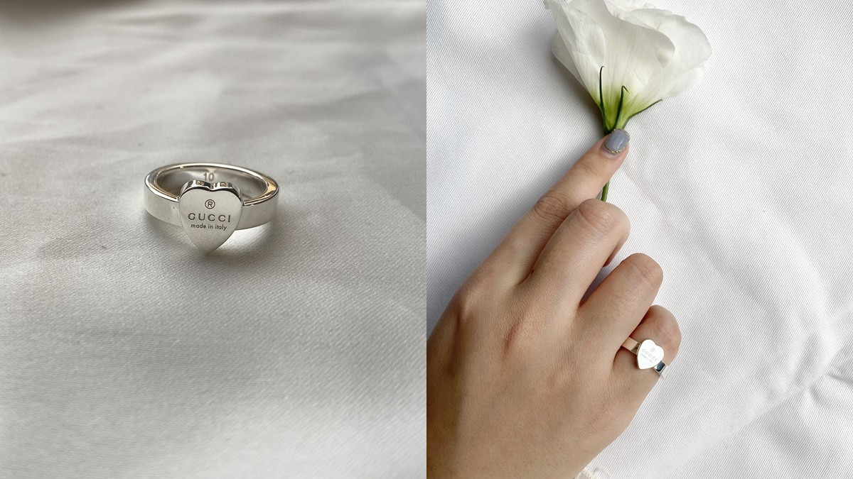 喜歡甜美風格的女孩,絕對不能錯過這款Gucci愛心戒指,925銀材質雋刻成心型圖案,再點綴上Gucci經典Logo標誌,充滿細節又不過分浮誇,甜度剛剛好的飾品,無論日常或出席盛會都百搭,重點是還萬元有找,可以說是CP值之最。