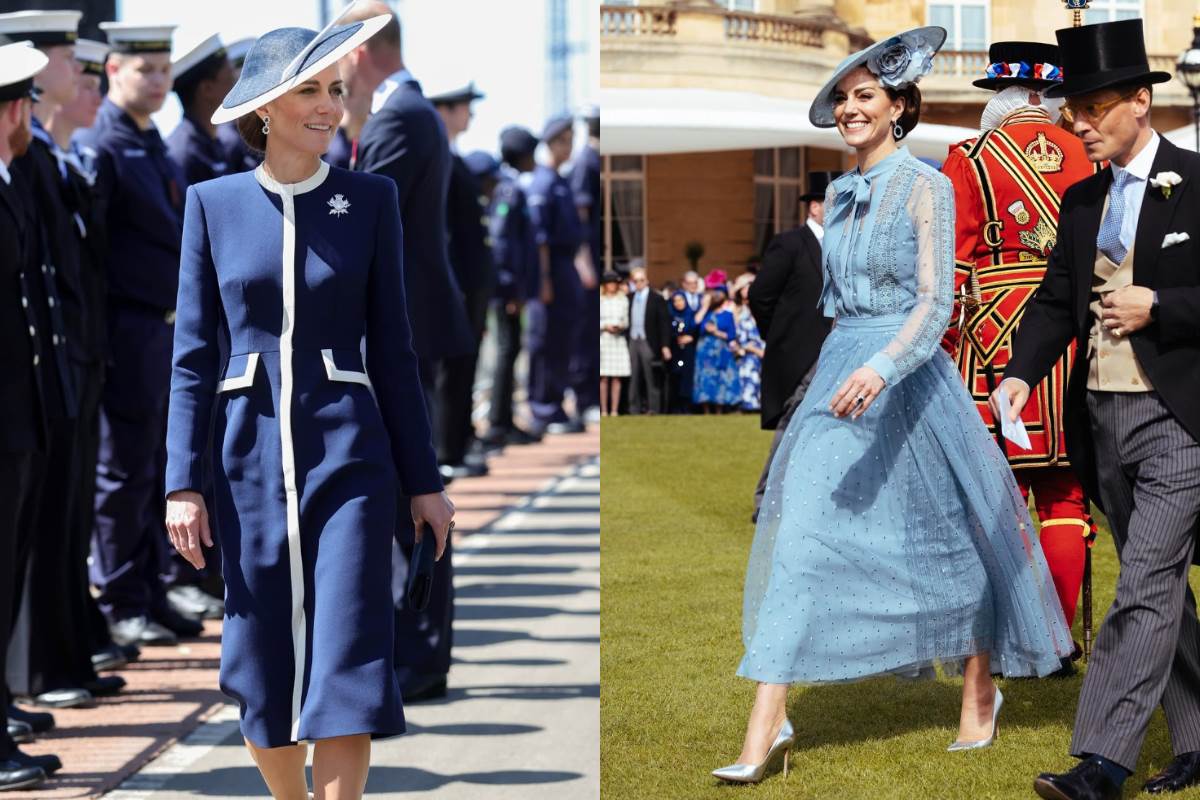 凱特王妃最為人稱道的技巧之一,就是對色彩的精準掌控。她常運用飽和度高、但不過分張揚的單色穿搭,一氣呵成地穿出高貴與專業感。她尤其鍾愛藍色系,從深沉的海軍藍到優雅的寶藍色,因為藍色在王室歷史中具有貴族意涵,同時能帶來冷靜、平和的精英印象。