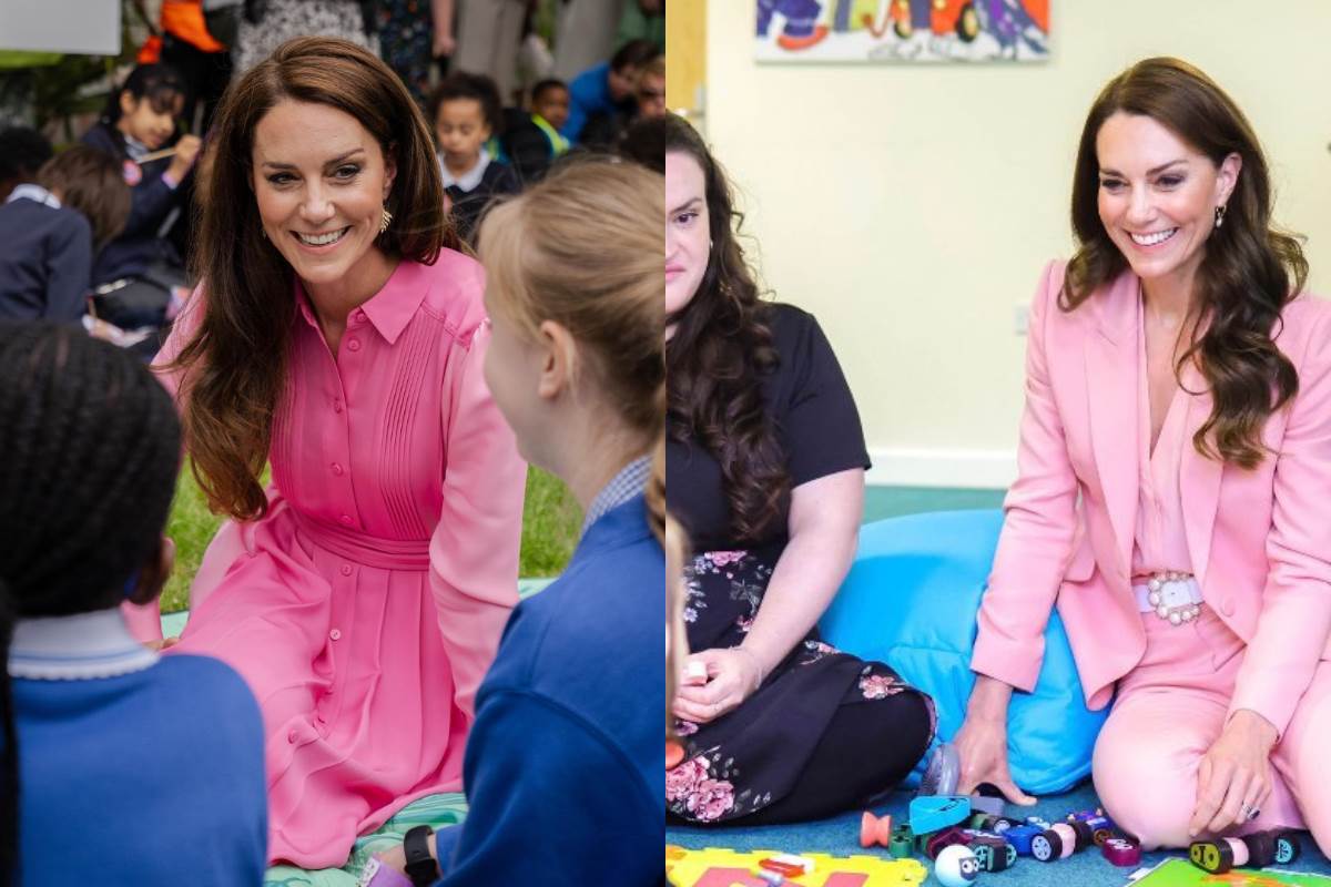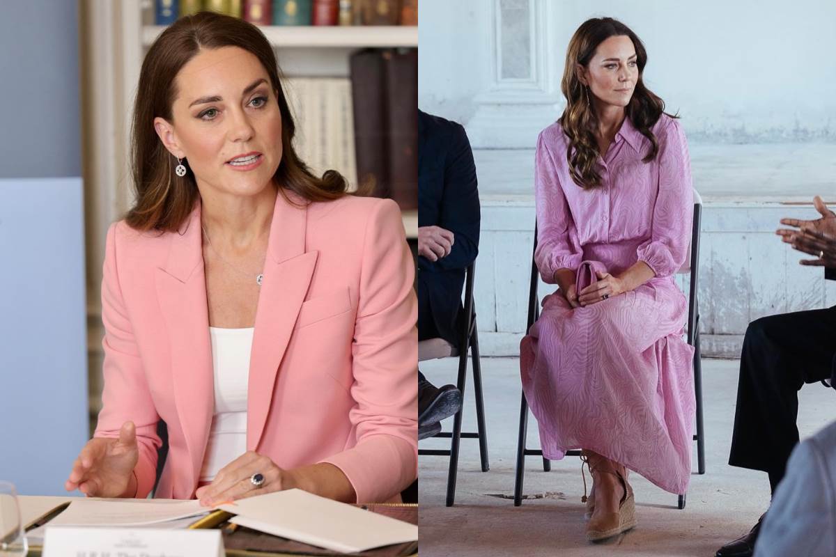 凱特王妃也擅長運用傳統上代表女性化的顏色穿出力量感。雖然她極少穿著甜美的粉紅色,但是她會選穿玫瑰粉、煙燻粉或裸粉色。這些帶有灰色調的粉色,既保留了女性的溫柔特質,又注入了成熟與沉穩,也傳遞出同理心、堅定力量的氣息。這在探訪婦女或醫療機構時特別具有說服力。