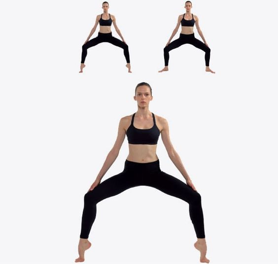 最後,是芭蕾踮腳蹲!基礎版本我們可以維持微蹲姿勢後,踮腳3秒後放下、再踮腳3秒放下...,快速重複這個動作1分鐘。