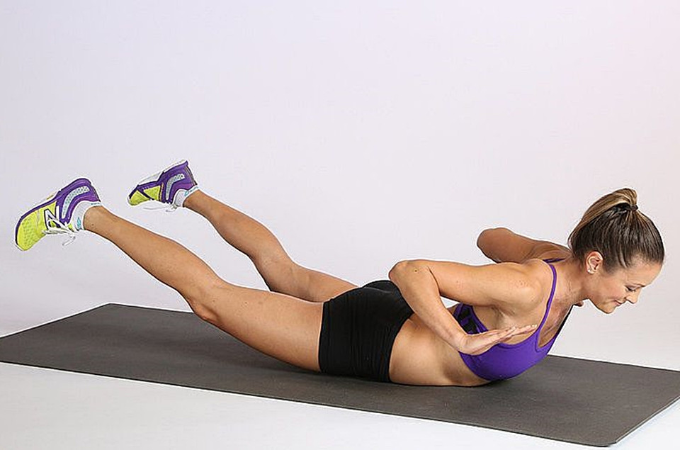 這款超人式對於腹肌、甚至是背部都有很好的運動效果,先趴在地面上、以腹部施力撐起雙手及雙腳,雙手向後彎曲成W字、雙腳盡量伸直,維持約15秒後慢慢放下,之後再重複做2-3次即可。