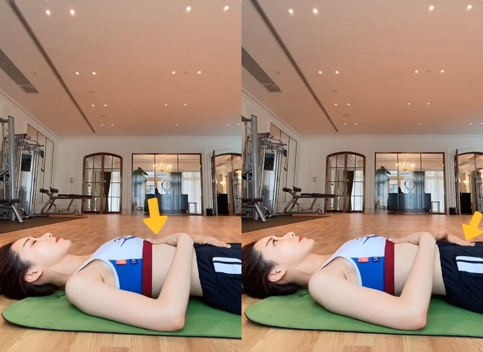 平躺在地,將一隻手放在肋骨、另一隻則放在小腹上,呼吸方法都是一樣的,吸氣時感受肋骨擴張,吐氣時感受肋骨內縮、手稍微壓小腹,感覺氣體排出體外,這種平躺式呼吸對於瘦小腹也有效果,保持均勻呼吸約1-2分鐘即可。