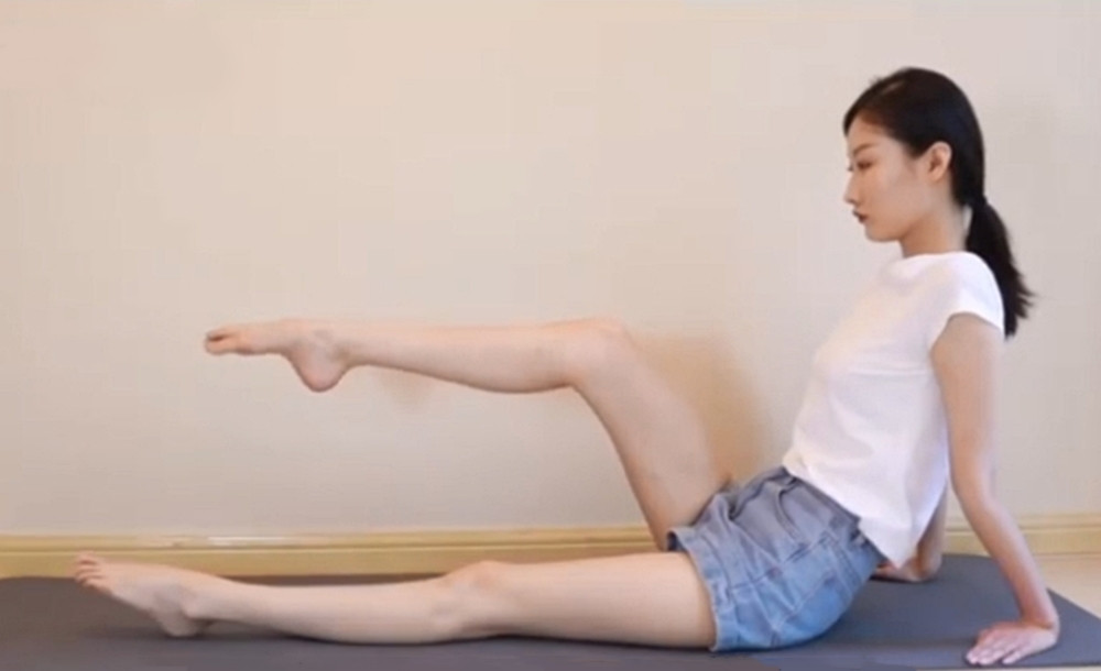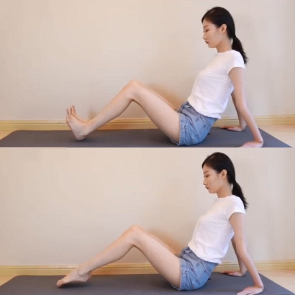 坐在地面上身體微微向後傾、以雙手向後撐地,屈膝、腹部施力將雙腿微微抬起,懸空離地固定後、將腳尖輪流上下點,注意雙腳全程維持離地狀態,在做這個動作時可以同時收緊腹部,加強腹部核心運動。